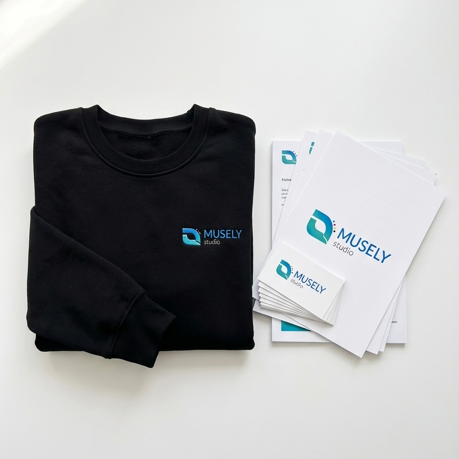 Musely Studio is a UK custom clothing and print supplier offering embroidery, custom printing, and short-run printed materials for businesses, schools, charities, and individuals across the UK. We produce branded workwear, custom hoodies, embroidered t-shirts, flyers, leaflets, booklets, and business cards — with a minimum order of 15 items for clothing and 25 for printed materials, and a quote turnaround of 1 working day.
